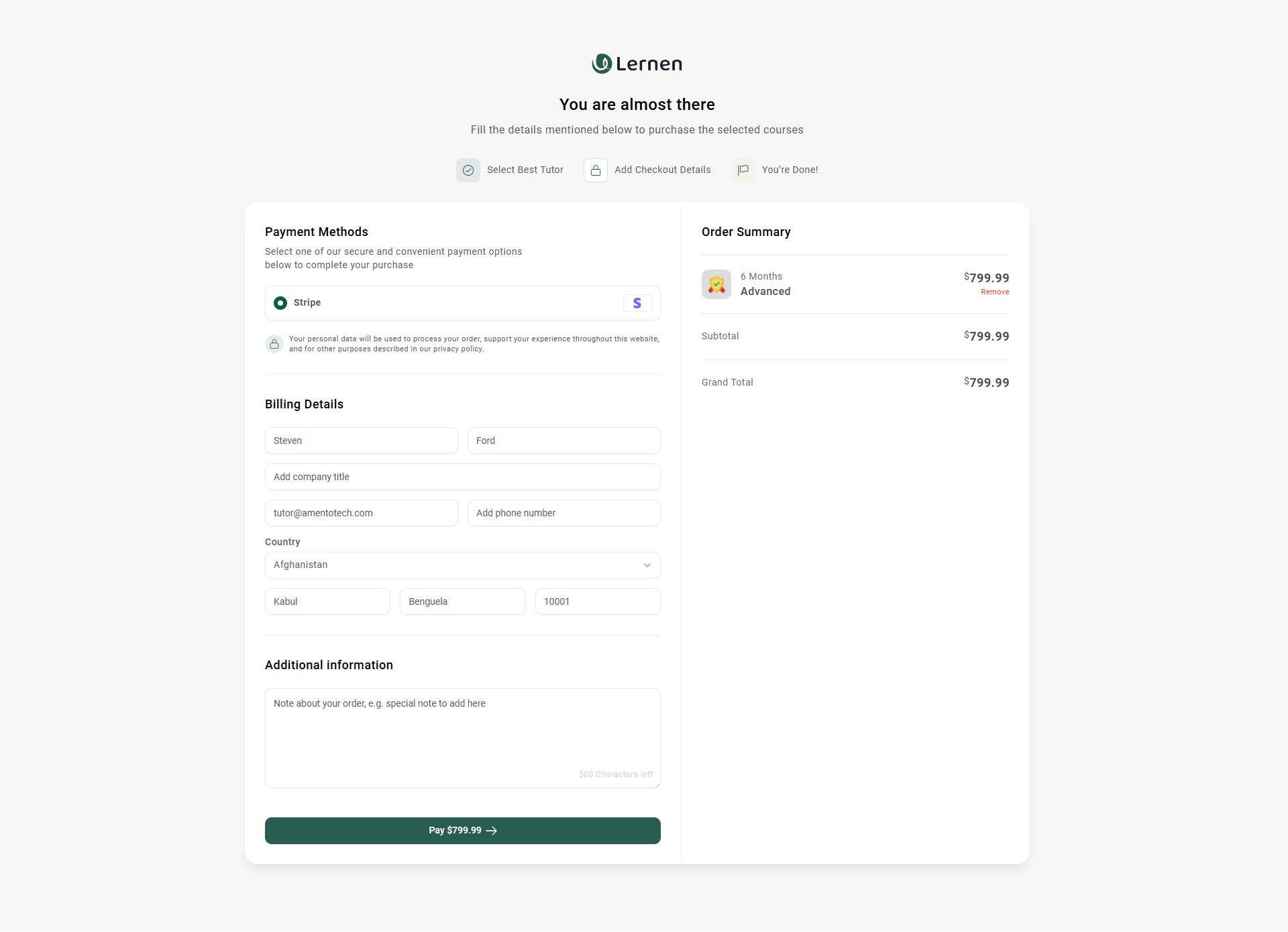 • After clicking the Buy Now button, you will be redirected to the payment page where you can select your preferred payment method (e.g., PayPal, Stripe, or Credit Card).